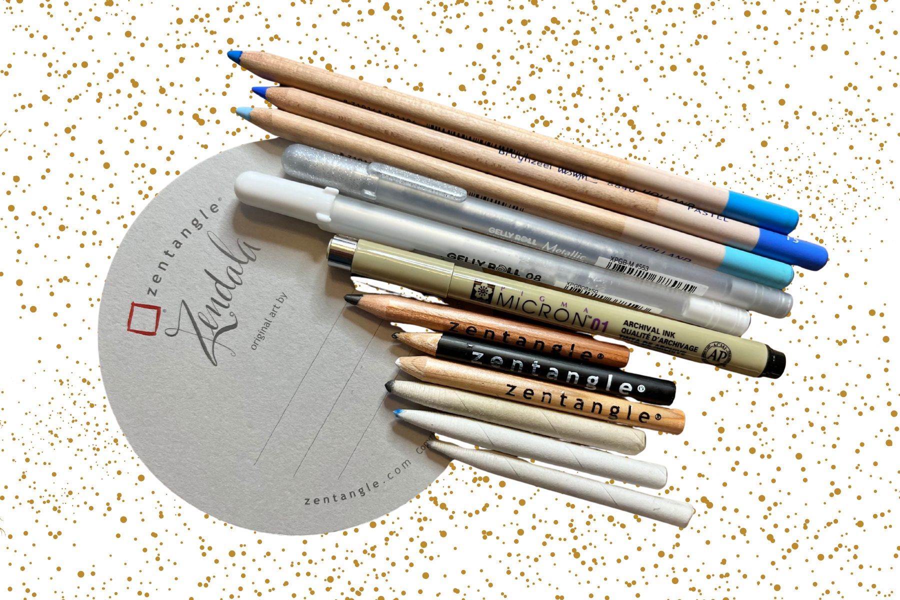A round Zendala tile - I'll be using a grey tile, but any surface colour will be fine. If you don't have an official tile, you can cut your own circular tile - I'll make paper suggestions if you don't have official Zentangle tiles.